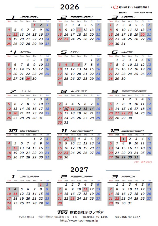 2025/12/25 来年の営業カレンダー公開 ←New!!